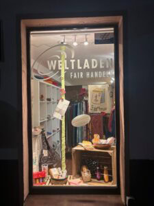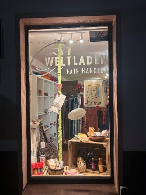 Im Weltladen wollen wir unseren Beitrag zu einem nachhaltigen Leben leisten mit Produkten die ökologisch produziert sind, die die aus recycelten Materialien sind und die helfen ein nachhaltigeres Alltagsleben zu gestalten.