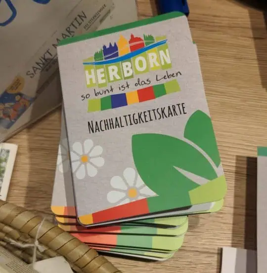 Ein Entwurf der Nachhaltigkeitskarte für Herborn wurde am 20. September 2025 während der Fairen Woche im Rahmen des Ökomarktes der Öffentlichkeit vorgestellt. Die Resonanz der Besucherinnen du Besucher war durchweg positiv. „Viele haben sich gefreut, dass es nun eine Übersicht gibt, die nachhaltige Angebote in Herborn bündelt und leicht zugänglich macht“, unterstreicht Frank Sträßer. Die druckfrischen Karten werden in Kürze an öffentlichen Stellen, Schulen und touristischen Einrichtungen erhältlich sein.