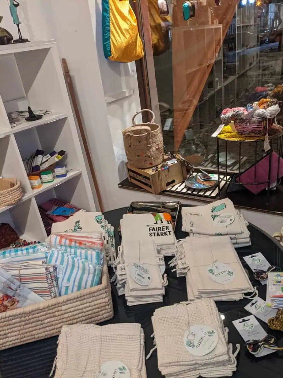Im Weltladen wollen wir unseren Beitrag zu einem nachhaltigen Leben leisten mit Produkten die ökologisch produziert sind, die die aus recycelten Materialien sind und die helfen ein nachhaltigeres Alltagsleben zu gestalten.